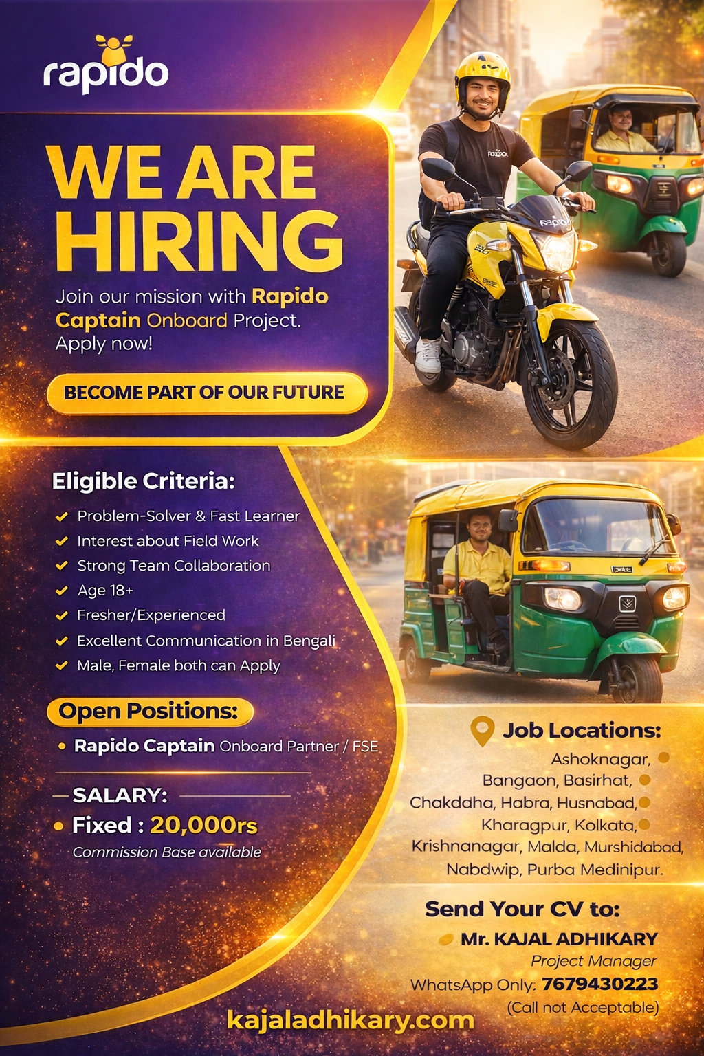Rapido Captain Onboard Project-এ নিয়োগ চলছে | চাকরির সুবর্ণ সুযোগ